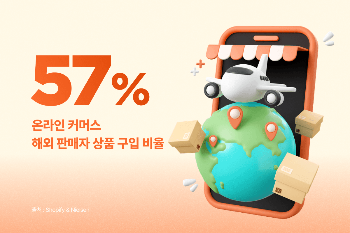 글로벌 이커머스 SaaS 플랫폼 쇼피파이(Shopify)와 닐슨(Nielsen)의 조사에 따르면 오늘날 전 세계 57%의 온라인 쇼핑객들이 온라인에서 해외의 다양한 브랜드의 제품을 구매하고 있다고 합니다. 해외 온라인 커머스 시장은 코로나 팬데믹 이후에도 여전히 지속적으로 성장하고 있으며, 그 성장 속도는 점점 빨라지고 있습니다.