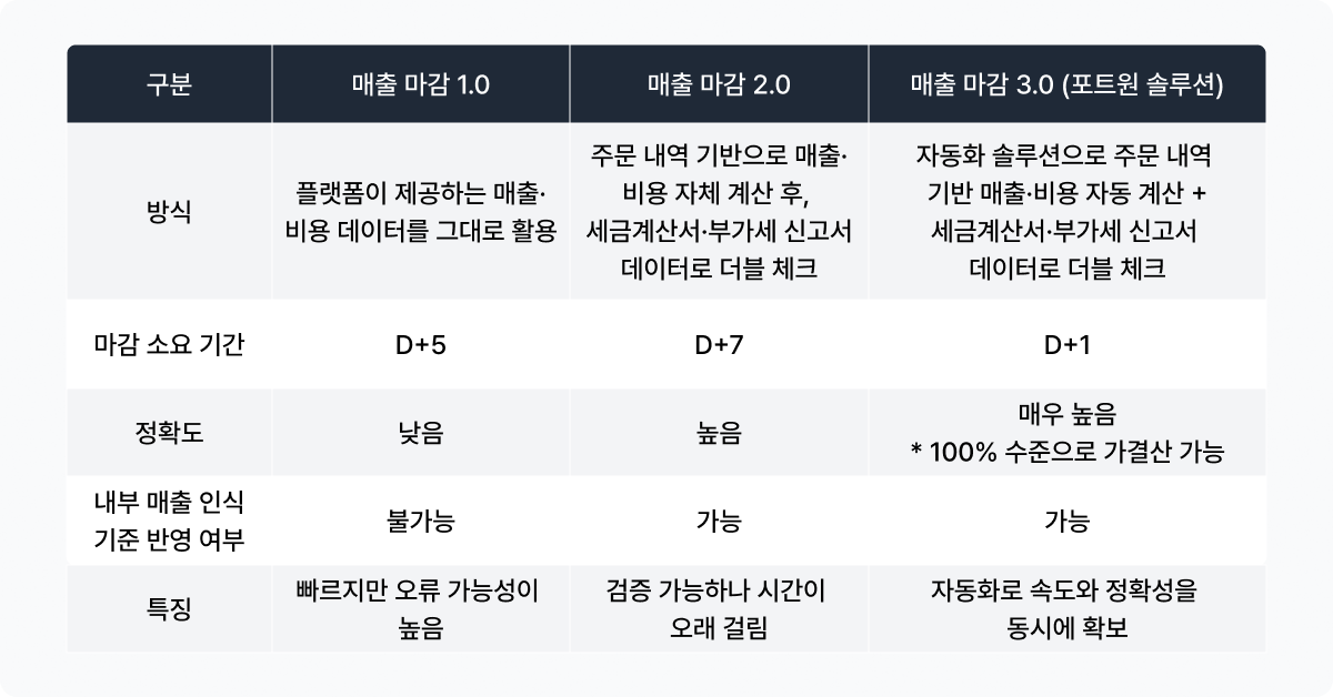 매출 마감 자동화 솔루션 도입문의 →