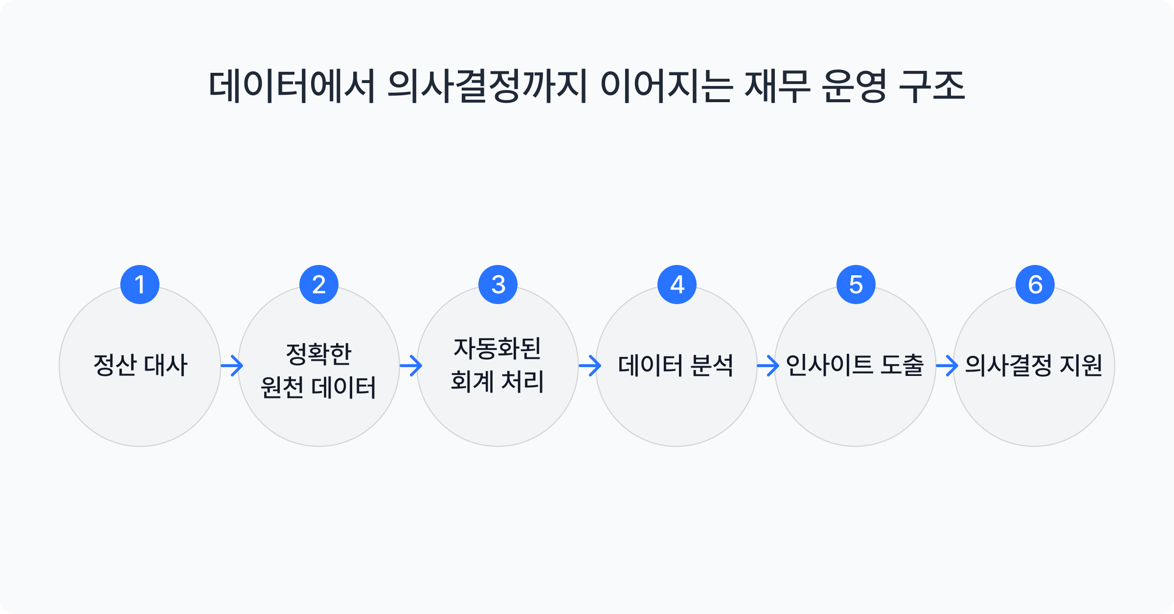 즉, ‘정산 데이터를 잘 보는 것’에서 끝나지 않고, 결산이 실제로 마무리되는 지점까지 이어지는 흐름을 만드는 것입니다.