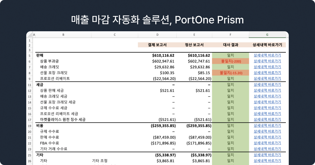 이 복잡한 현실을 단순하게 바꾼 해답이 바로 PortOne의 매출 마감 자동화 솔루션, PortOne Prism입니다.