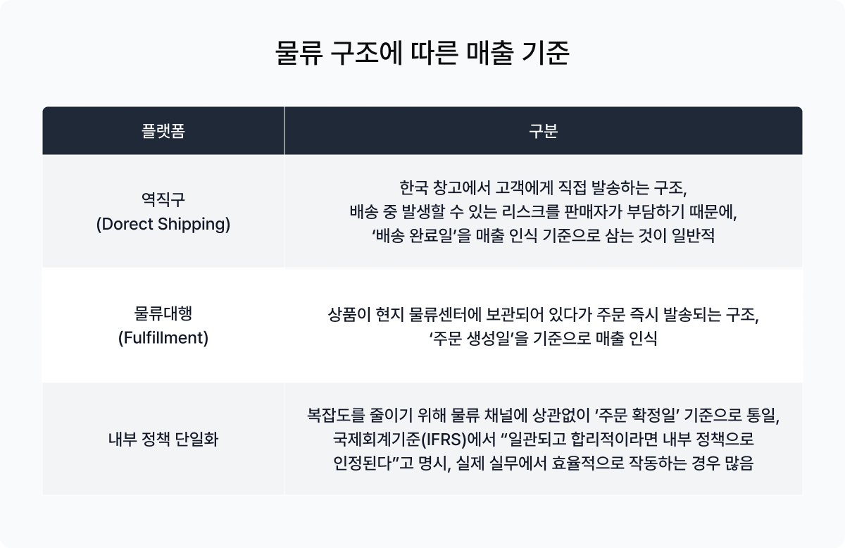 해외 판매가 확대될수록 물류 채널은 복잡해지고, 매출 인식 기준은 더욱 다양해집니다. 하지만 그럴수록 ‘기준의 일관성’은 기업의 신뢰성과 회계 투명성을 지키는 핵심이 됩니다.