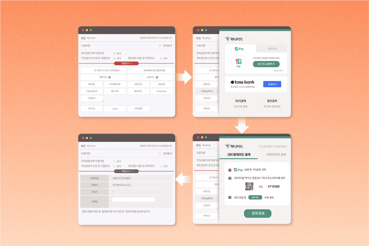 인증 방식 결제는 PG사 팝업 결제창을 띄우는 일반적인 결제 방식으로 이해하면 쉽습니다. 일반 결제로 지원되는 결제 수단인 신용카드, 실시간 계좌이체, 가상계좌, 휴대폰 소액 결제는 국내 이커머스 시장에서는 너무나 익숙한 결제 방식이지요. 인증 방식 결제는 제공하고자 하는 결제 수단을 안전하게 연동할 수 있다는 장점이 있지만, 고객이 결제를 진행하는 과정이 비인증 방식에 비해 번거롭다는 단점이 있습니다.