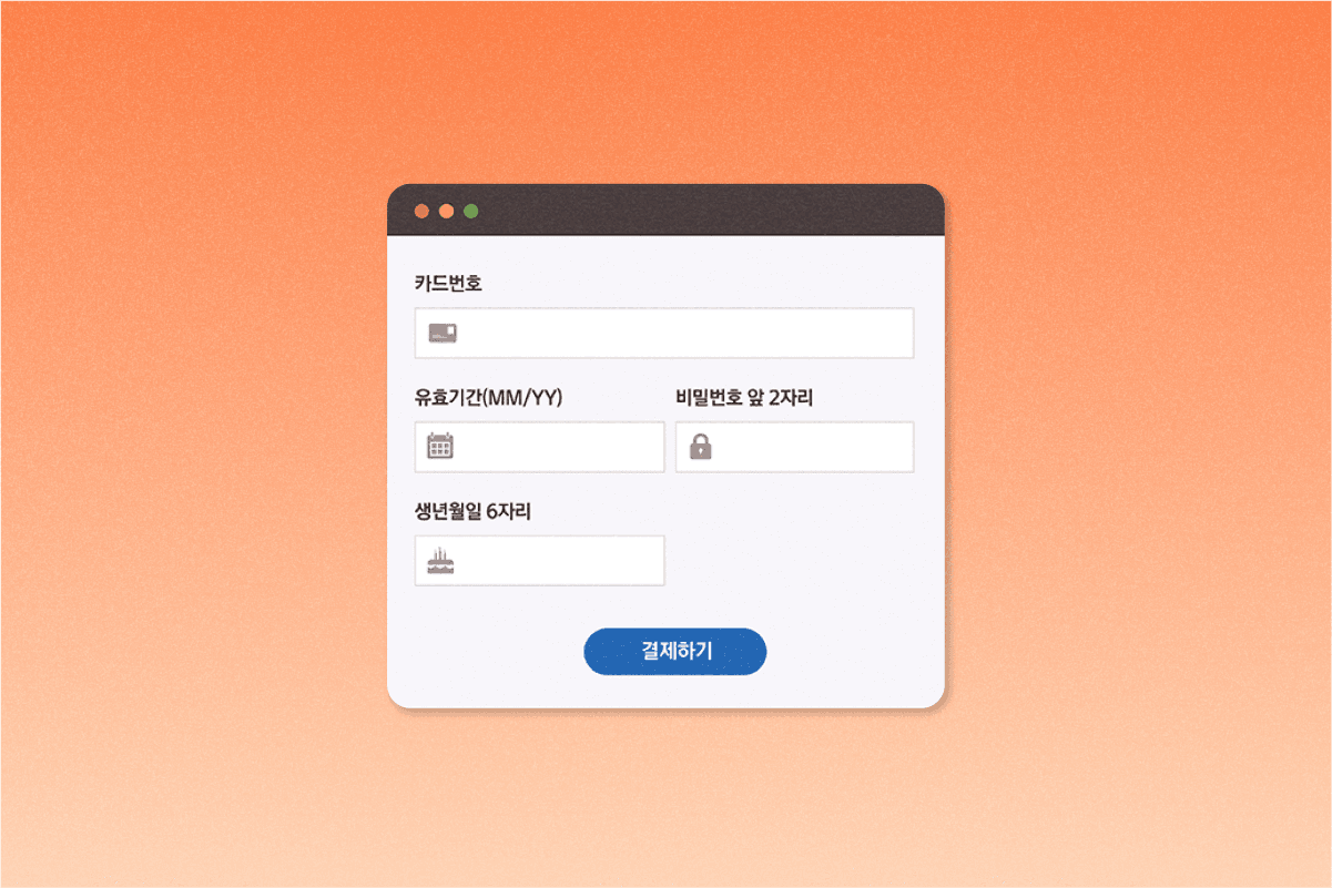 해외에서 널리 쓰이는 비인증 방식 결제는 결제 시 고객이 카드 정보(카드번호, 유효기간, CVC 등)를 입력하면 바로 결제가 완료되는 결제 방식을 따릅니다. 인증 방식 결제에 비해 결제 과정이 복잡하지 않아 고객 입장에서 결제가 손쉽고 빠르다는 장점이 있지만 팝업 결제창에서 처리되는 카드사 자체 인증 절차가 생략되어 보안이 취약하다는 단점이 있습니다. 실제로 카드 정보만 입력하면 바로 결제가 이루어지기 때문에 범죄에 악용될 가능성도 매우 높습니다.
