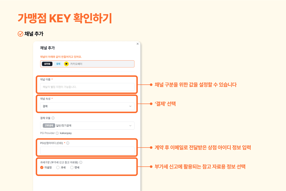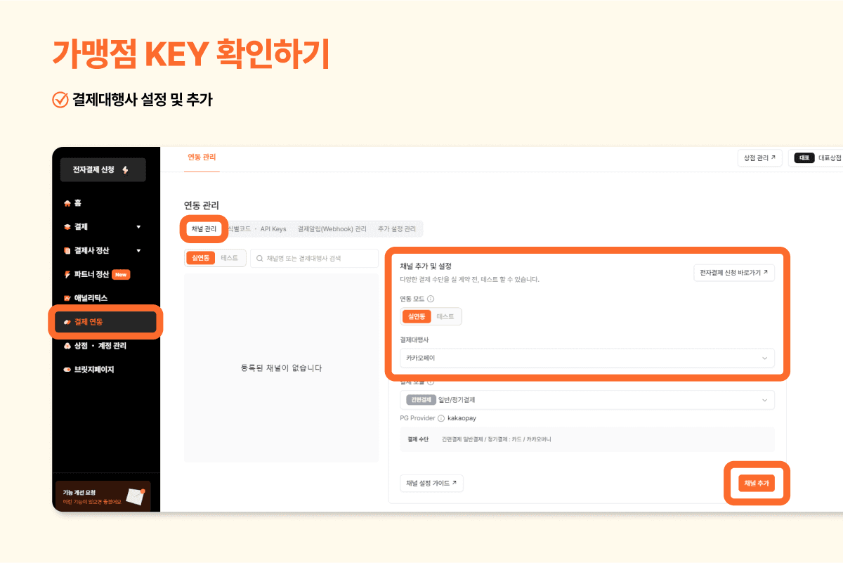 관리자콘솔 > 결제 연동 > 채널 관리 > 채널 추가 및 설정 > 채널 추가