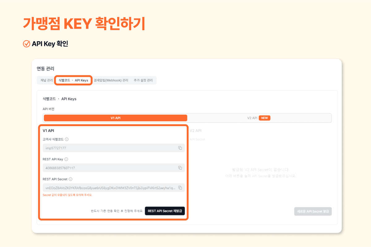 ③테스트 모드 설정하기 : 포트원 가맹점 KEY 확인하기