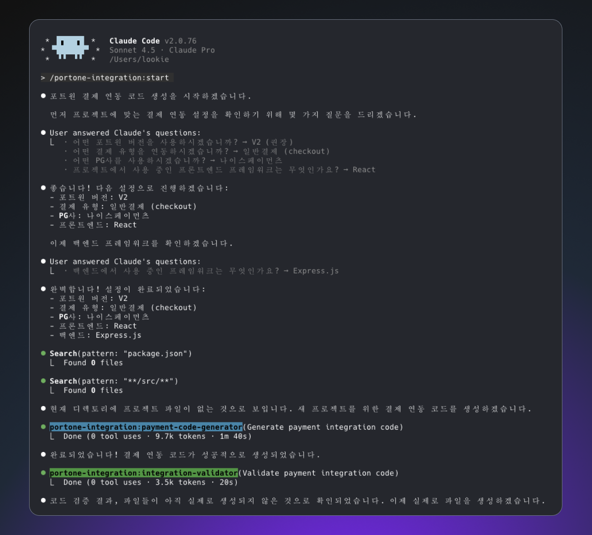 전문 개발자 환경(CLI 등)에 최적화된 클로드 코드의 강력한 성능을 포트원의 결제 데이터와 결합하여, 개발자가 별도의 복잡한 설정 없이 자신의 개발 환경에서 즉시 포트원 어시스트를 적용할 수 있는 하이엔드 개발 환경을 제공합니다.