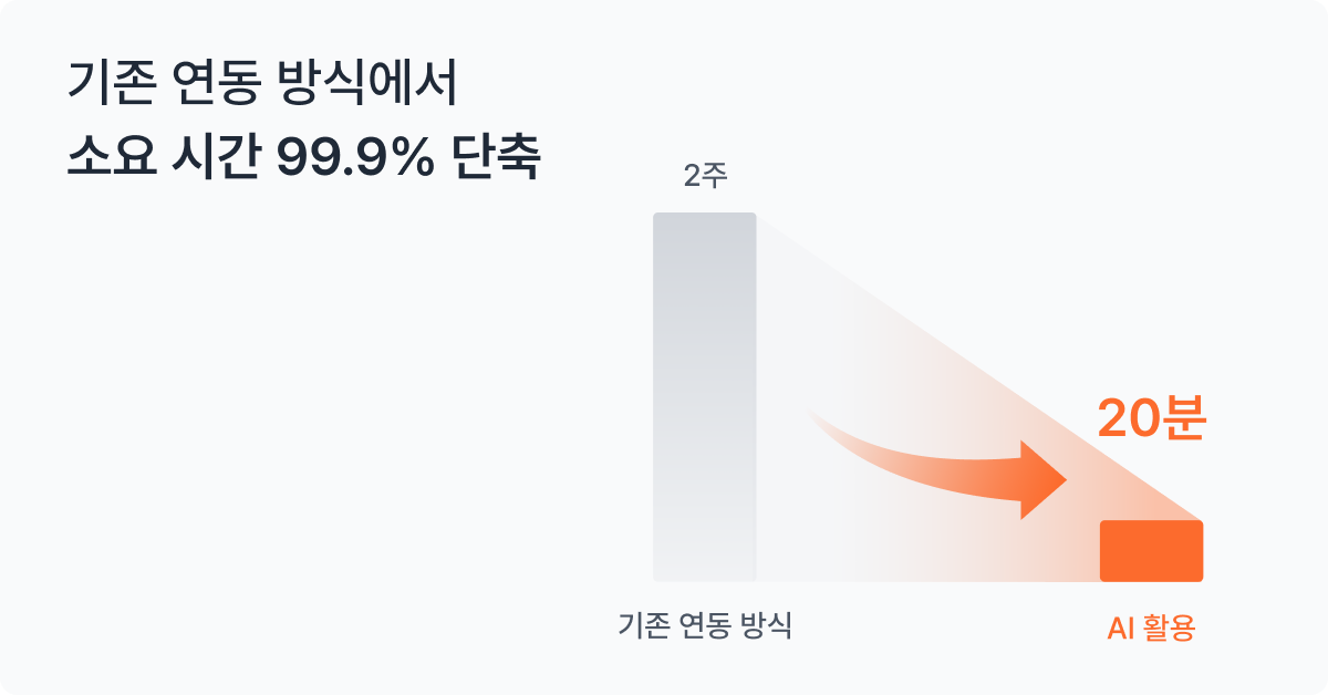 포트원의 자체 PoC 결과에 따르면, 기존에 평균 2~3주가 소요되던 복잡한 결제 연동 과정이 AI CodeMate 도입 시 단 20분 내외로 단축되었습니다.