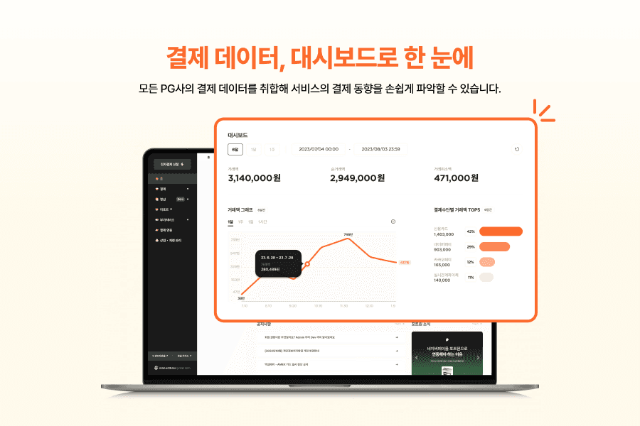 온라인 사업을 운영하고 있다면 빼놓을 수 없는 가장 중요한 것이 바로 ‘결제’입니다. 서비스 사용 고객에 맞춘 결제 수단 선택부터 PG사 선택 그리고 계약까지 복잡하고 어려운 산을 넘고 나니, 또 다른 과제가 기다리고 있습니다. 바로, 결제 데이터 관리. 결제 관리 또는 정산을 담당하시는 담당자분이 시라면 공감하실 텐데요. 결제 데이터를 확인하기 위해서는 PG사의 관리자 페이지에 접속해 개별적으로 확인해야 하는 번거로운 과정을 필수적으로 거쳐야 했습니다.