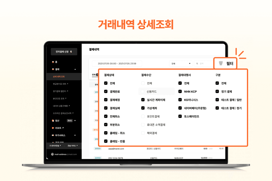 결제와 관련된 모든 정보를 한눈에
